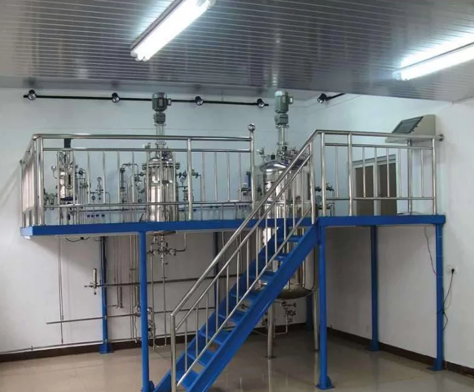 Конфигурация оборудования: ковшовый подъемник, переходный ковш и кронштейн, кубическая реакционная емкость, роторный насос и трубопровод, эмульсионный насос, двухступенчатый фильтр, кубический промежуточный резервуар, линия розлива в большие бочки и главный пульт управления.
