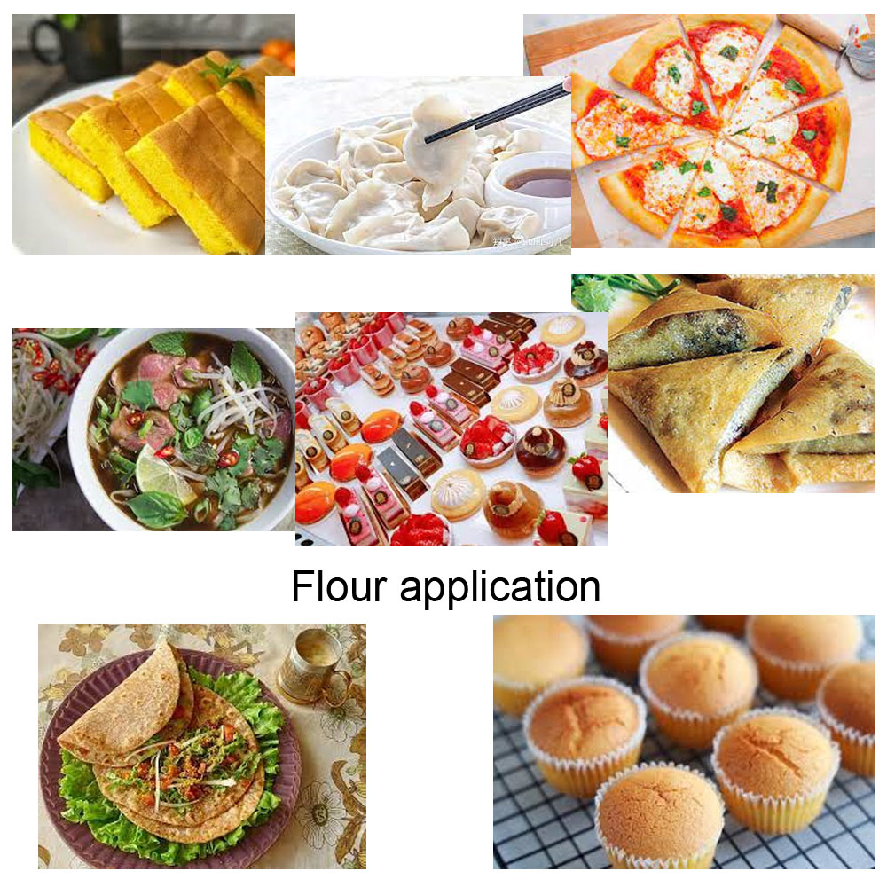 | Model | Raw material | Production capacity | Motor power | Net weight | Dimension | Flour mesh |