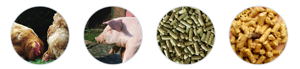 Используется для производства кормов для крупного рогатого скота, овец, свиней, лошадей, верблюдов, ослов, оленей, собак, кур, уток, гусей, кроликов и других животных, скота и птицы. Например, гранулы куриного корма и гранулы свиного корма диаметром 2-4 мм, гранулы кроличьего корма диаметром 2-5 мм, гранулы корма для крупного рогатого скота или овец диаметром 4-8 мм. Длина готовых частиц может быть отрегулирована.
